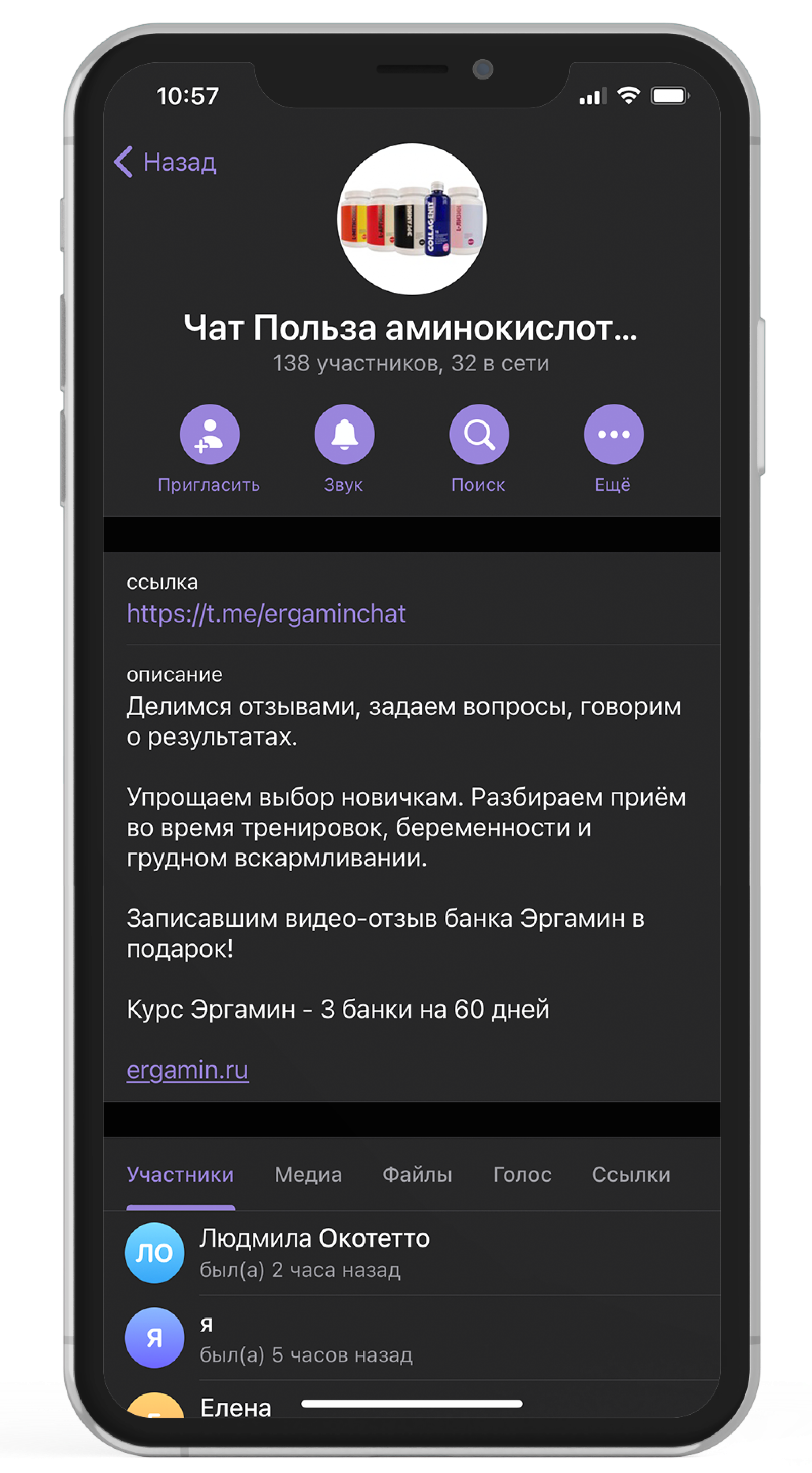 Мы обсуждаем преимущества аминокислот в Telegram-чате: Эргамин, Коллагенит, Метионин, Лизин, Аргинин, Триптофан